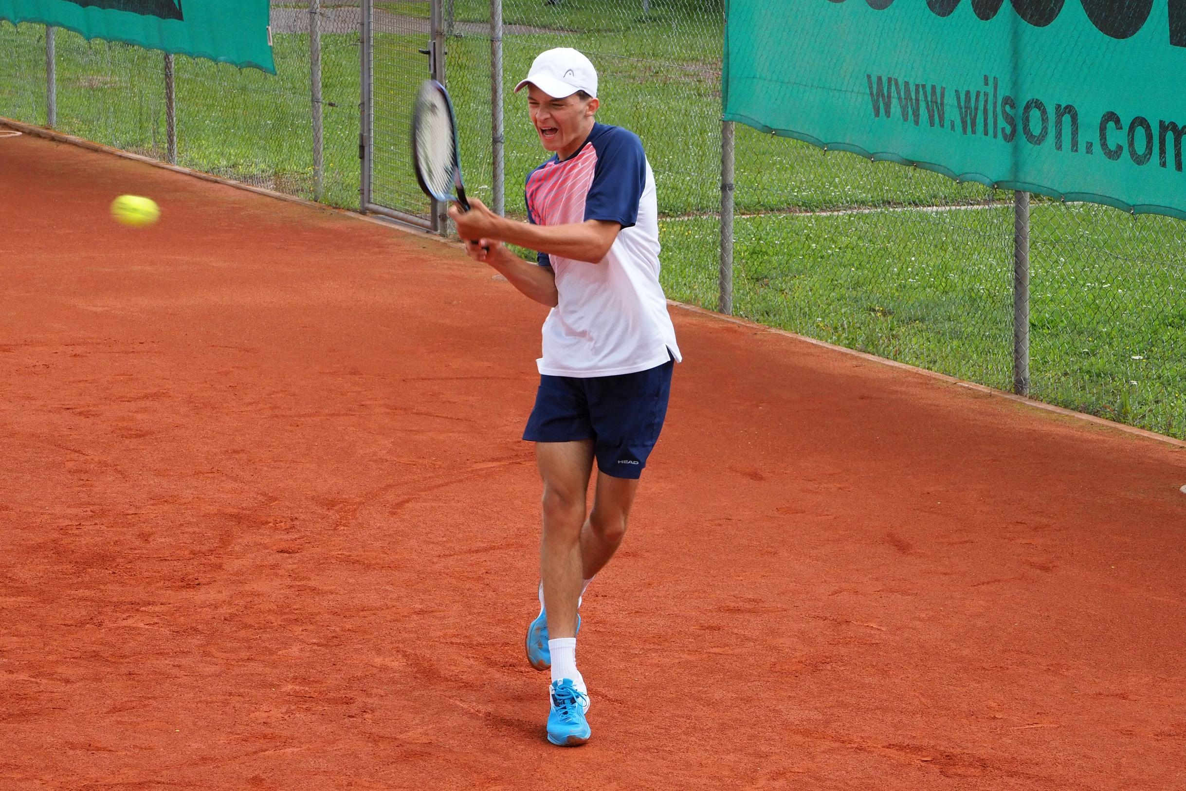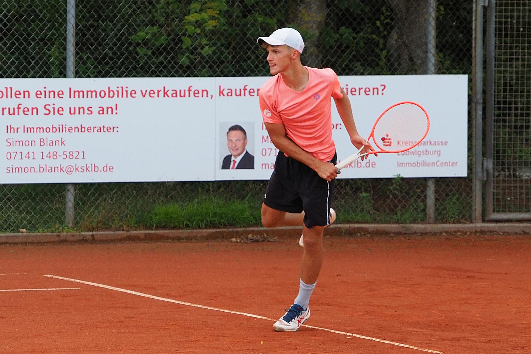 Besser sah es wieder am Sonntag aus. Bei schönstem Sommerwetter wurden die beiden Halbfinals ausgetragen, wobei der an Nr. 3 gesetzte Amar Tahirovic (DTB 603) vom TSC Renningen seinem Gegner Amine Hamouti (LK 2,9) vom TC First-Line-Academy Murr mit 6:0, 6:1 keine Chance ließ. Spannender ging es im zweiten Halbfinale zu: hier konnte sich Yannick Zeitvogel (LK 2,1) vom TEV R.W. Fellbach gegen den an Nr. 2 gesetzten Philipp Leithold (DTB 582) vom TC Metzingen mit 6:3, 4:6 und 10:7 erst im Match-Tiebreak durchsetzen.