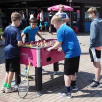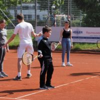 Kaum waren die „Kornwestheim Open 2019“ beendet, da stand schon das nächste Saison-Highlight beim TCK auf dem Program: am 1. Mai waren an der Bogenstraße Vereinsmitglieder und vor allem auch Gäste und alle Tennis-Begeisterten eingeladen, sich ein Bild von der Anlage und vom Vereinsleben zu machen. Bei ungetrübt sonnigem Wetter wurden alle Plätze intensiv genutzt, um sich auf die Freiluftsaison vorzubereiten. Die Trainer Michel Rogiers und Patrick Kienzle boten ein kostenloses Schnuppertraining an, und auch für den jüngsten Nachwuchs gab es Anleitung und Anreiz zu sportlicher Betätigung. Abgerundet wurde das Angebot durch eine Hüpfburg, Gegrilltes und Getränke auf der Terrasse des Restaurants „Matchpoint“ sowie das Angebot, zu günstigen Preisen Tenniskleidung und –ausrüstung zu erwerben.
